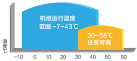 1、運行范圍寬廣,-7oC~43oC的寬廣環(huán)境溫度范圍內(nèi)可穩(wěn)定運行,讓用戶一年四季都不受外界惡劣天氣的影響。出水溫度30oC~58oC靈活可設(shè),根據(jù)用戶需求隨心設(shè)定,滿足用戶不同的個性化要求。