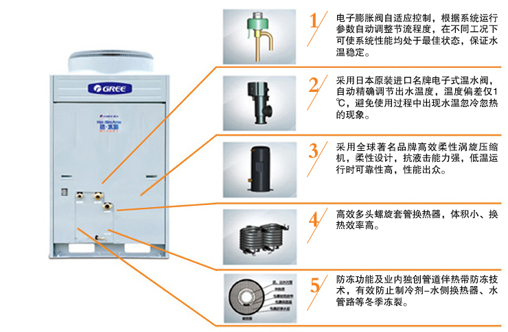 1、采用先進(jìn)的水路設(shè)計(jì),平均能效比高達(dá)4.5(高達(dá)5.8)。